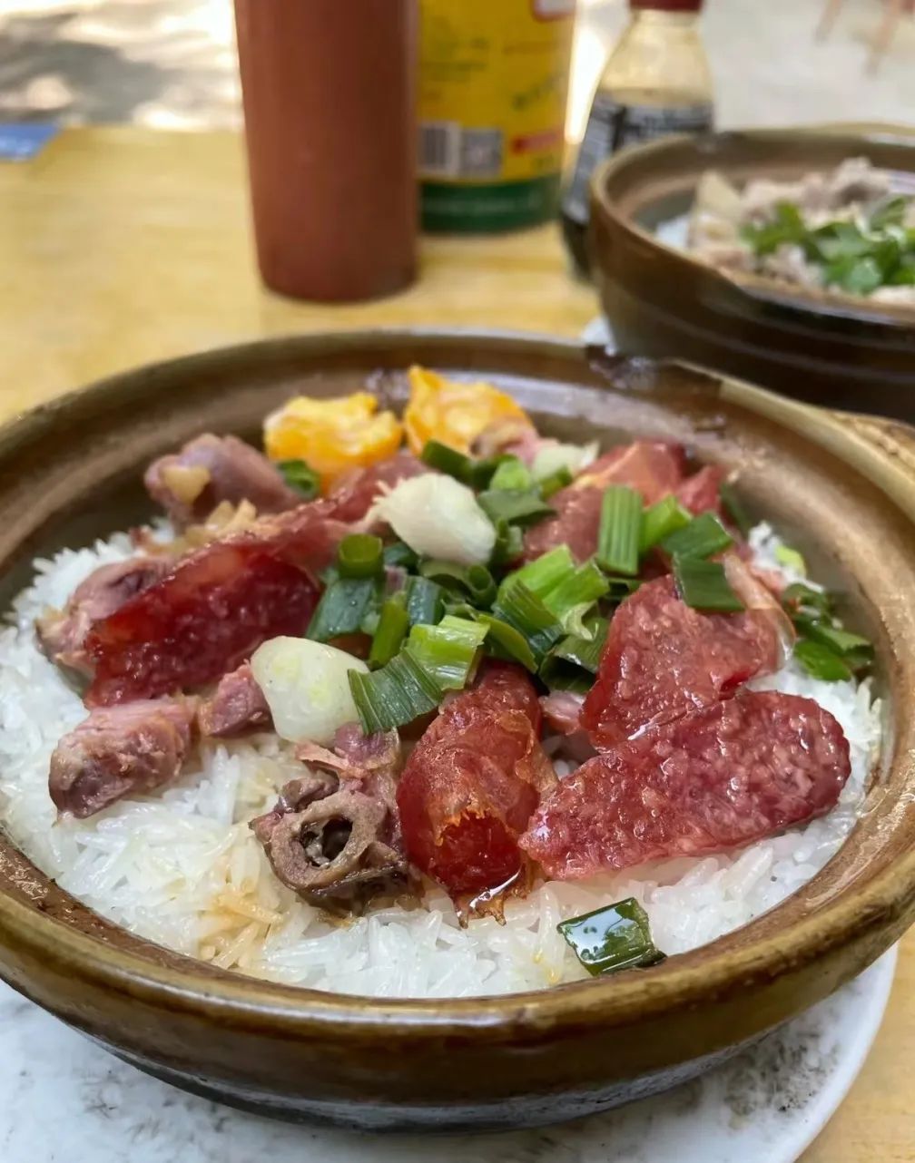 点个腊肠煲仔饭加咸蛋、牛腩汁捞云吞